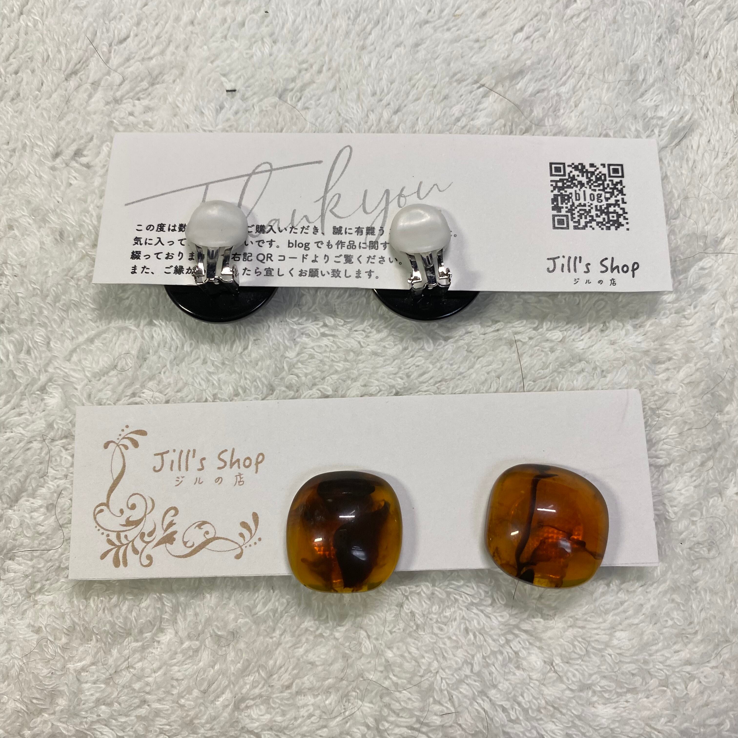 シンプルでシックなクリップ式イヤリング2種です。