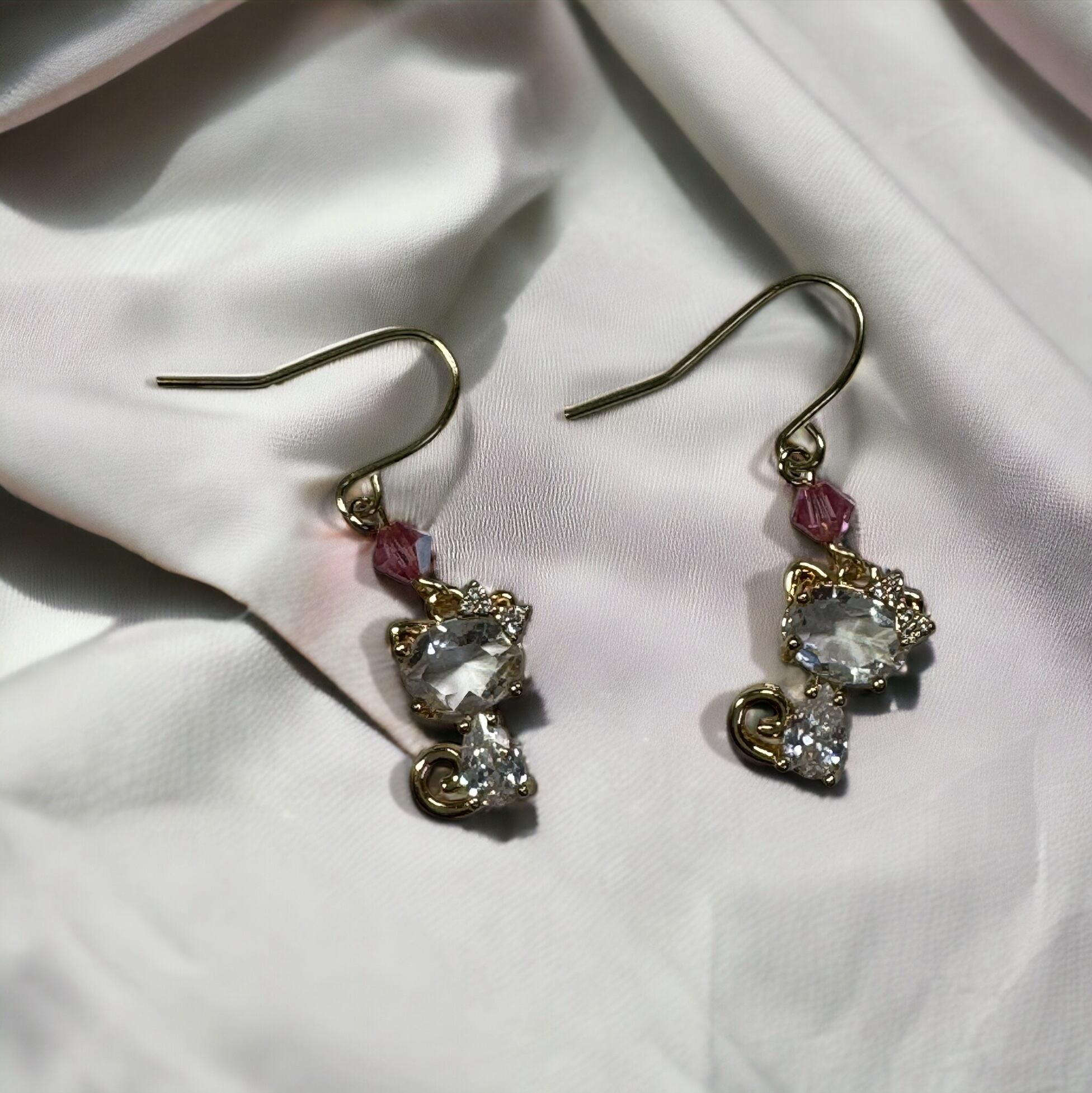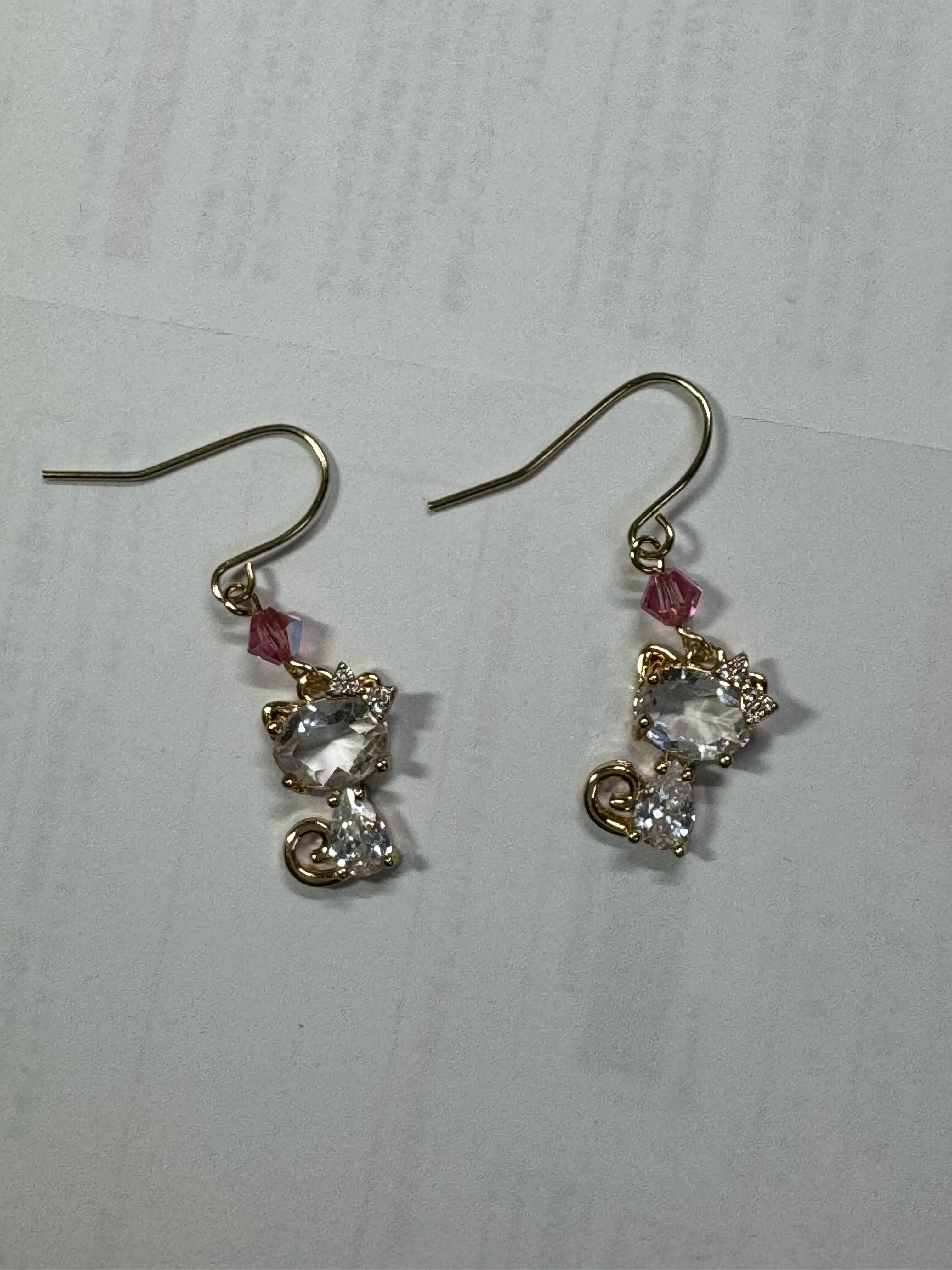 ガラスの猫のチャームに、スワロをちょこんとつけました。可愛らしいピアスです。