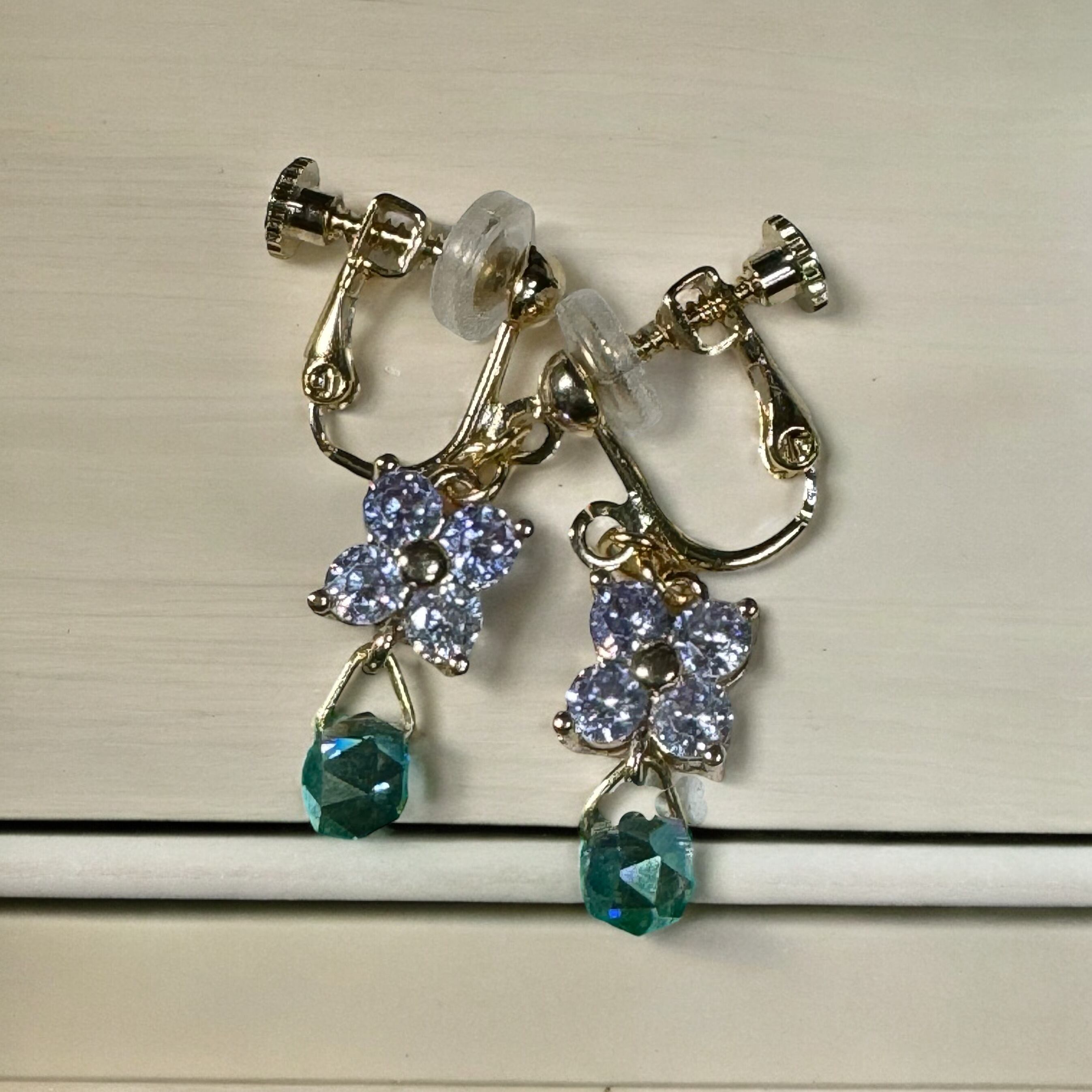 ガラスビーズは多面カットで、通し穴が端に寄っているので丸いチャームのような愛らしさです。